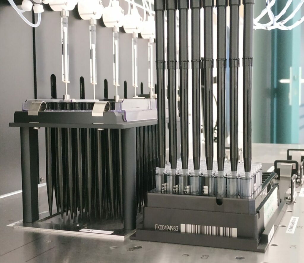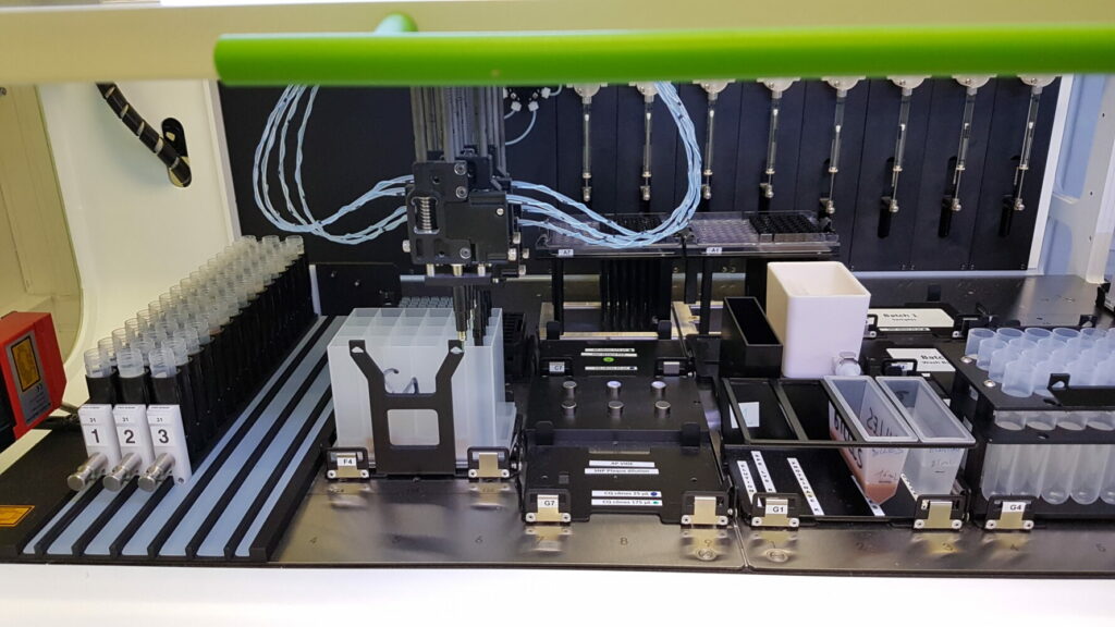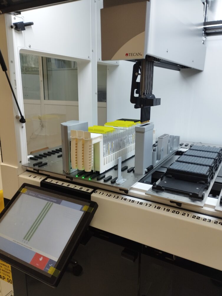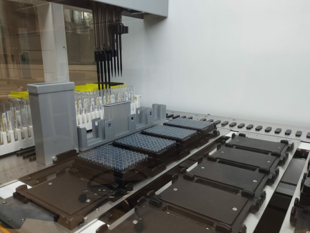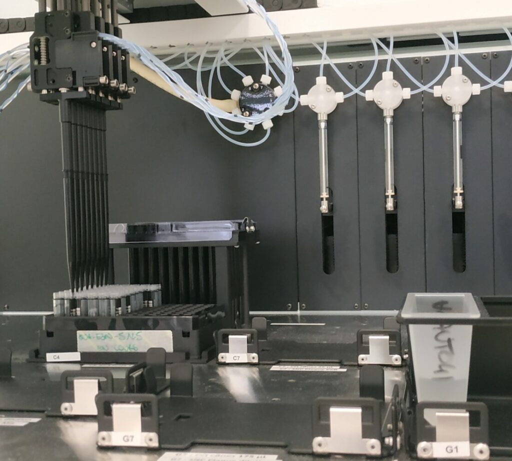 Le pipetage des ADN ainsi extrait est réalisé sur un JANUS (Revvity).