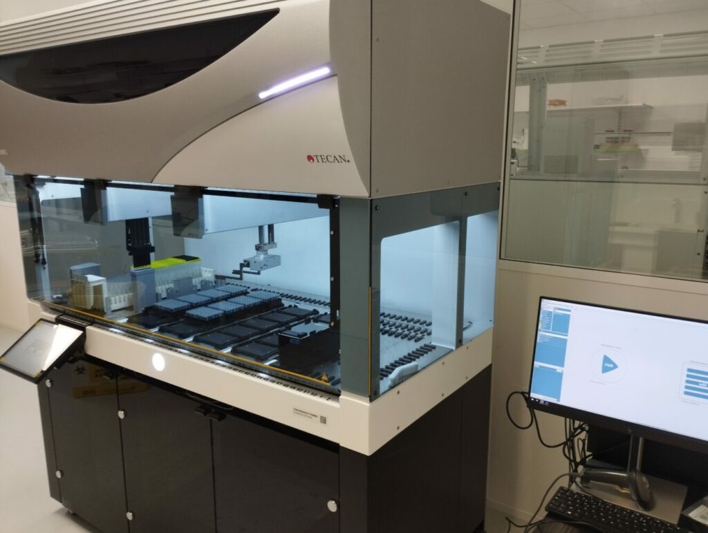 Un pipeteur automatisé Fluent (Tecan) permet également de traiter en parallèle 96 échantillons de sang pour isoler les fractions dérivées plasma, serum et buffy-coat.