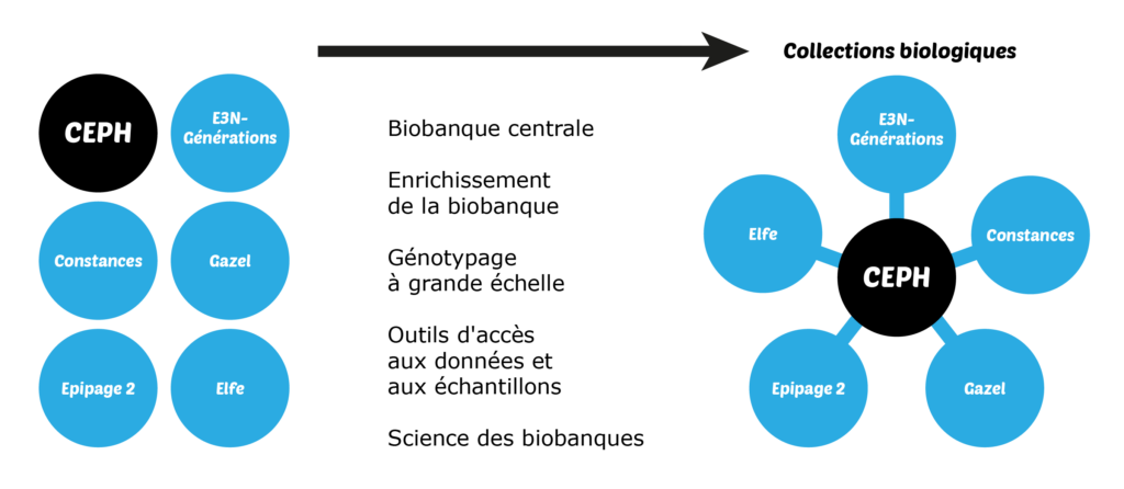 Ce projet s’appuie sur les équipements matériels existants et nouveaux, les échantillons biologiques des cohortes et les équipements nécessaires à leur conservation et leur traitement. Sans oublier les vastes équipements immatériels tels que les données des cohortes et le savoir-faire technique et scientifique du centre de ressources biologiques (CRB) du CEPH à Paris.
